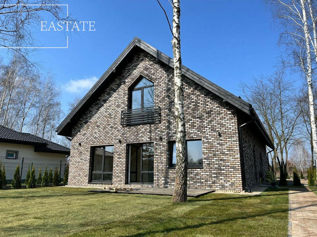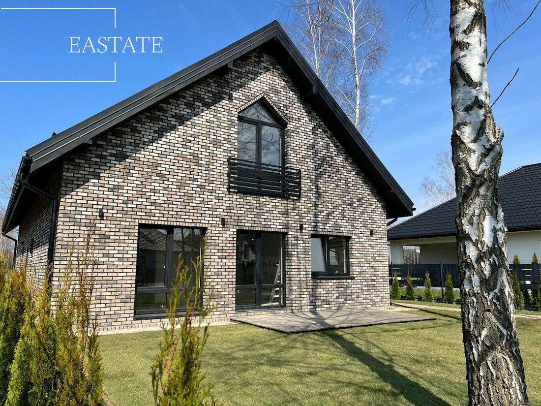 Elewacja wykonana jest z ręcznie formowanej belgijskiej cegły klinkierowej, co sprawia, że dom wyróżnia się na tle standardowej zabudowy deweloperskiej.